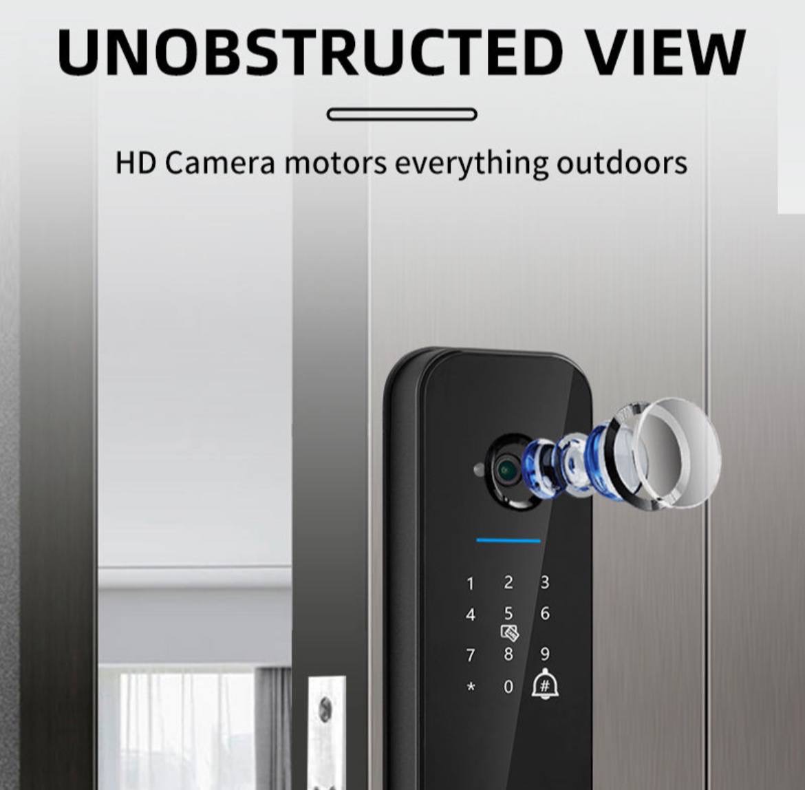 • 📸 كاميرا وشاشة مدمجة: شاهد من يطرق بابك بوضوح قبل الفتح.